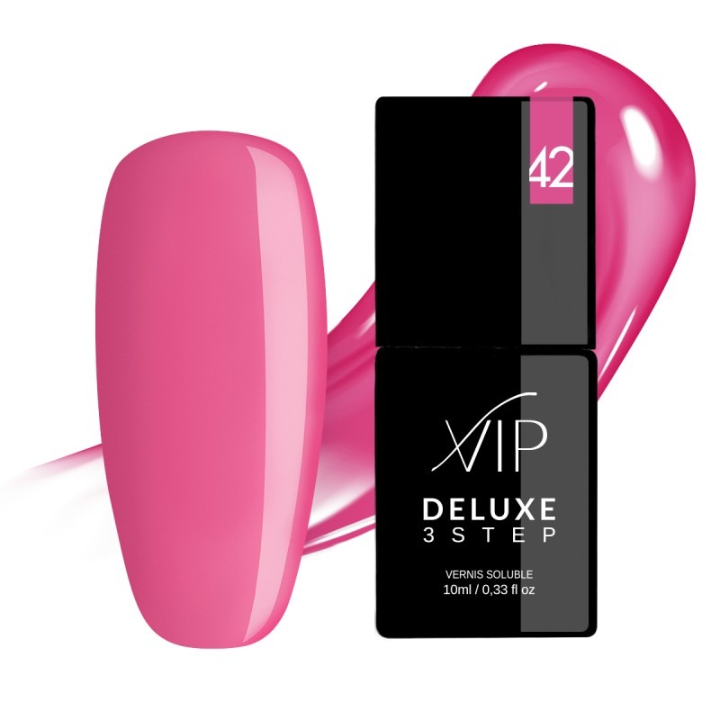 Linea di smalti semipermanenti facile e veloce da applicare, la Vip Deluxe 3 Step non cola ed è facile da rimuovere. Non contiene formaldeide, toluene, dbp e permette una durata di 22 giorni.