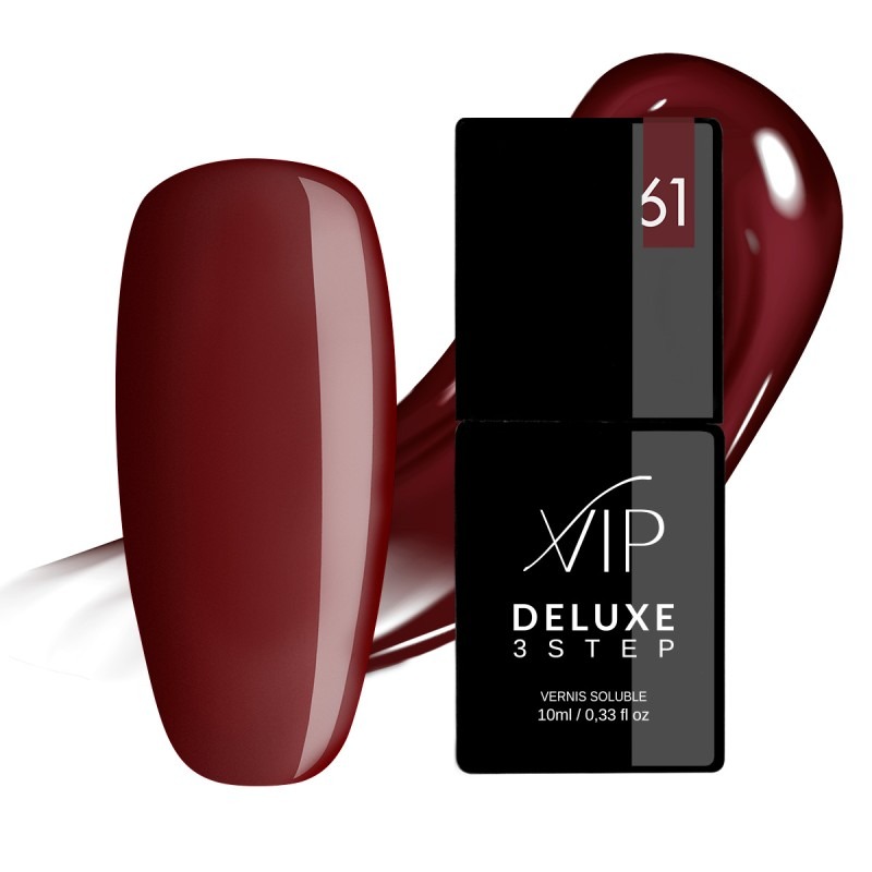 Linea di smalti semipermanenti facile e veloce da applicare, la Vip Deluxe 3 Step non cola ed è facile da rimuovere. Non contiene formaldeide, toluene, dbp e permette una durata di 22 giorni.