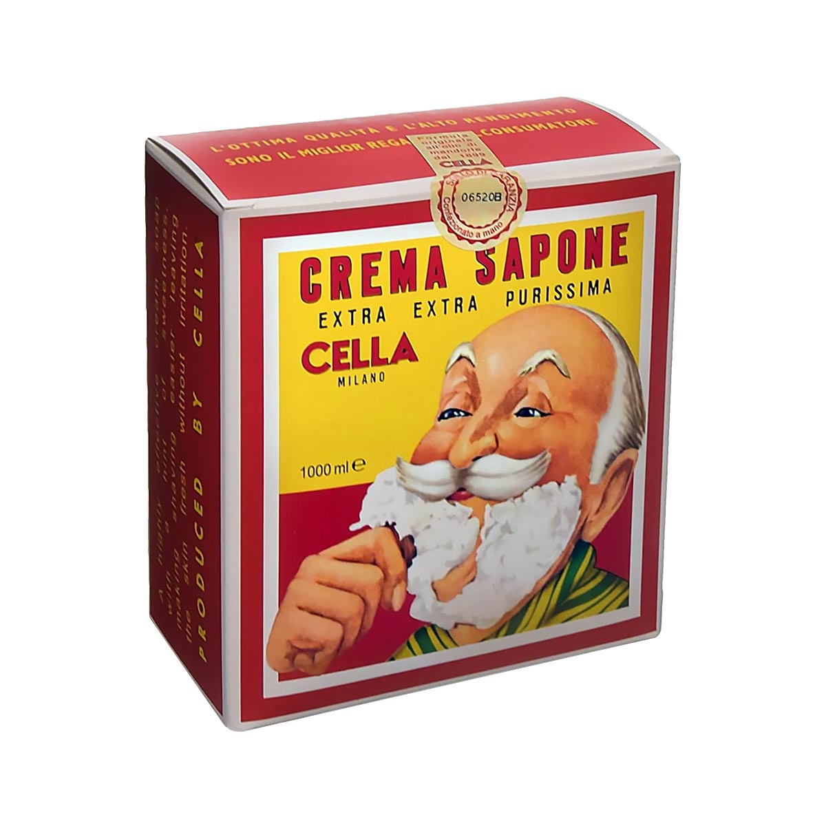 Crema Sapone Extra Purissima Cella 1kg rasatura senza irritazioni con olio di mandorla. Schiuma compatta per pelle morbida e liscia. Adatta a tutti i tipi di barba.