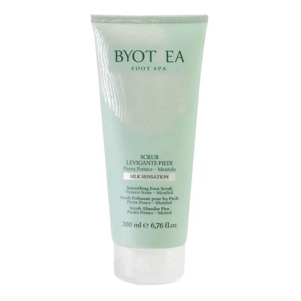 Byotea Scrub Levigante Piedi: idrata, nutre e ripara la pelle secca e screpolata. Con Burro di Karitè, Olio di Jojoba e Aloe Vera, per piedi morbidi e rigenerati.